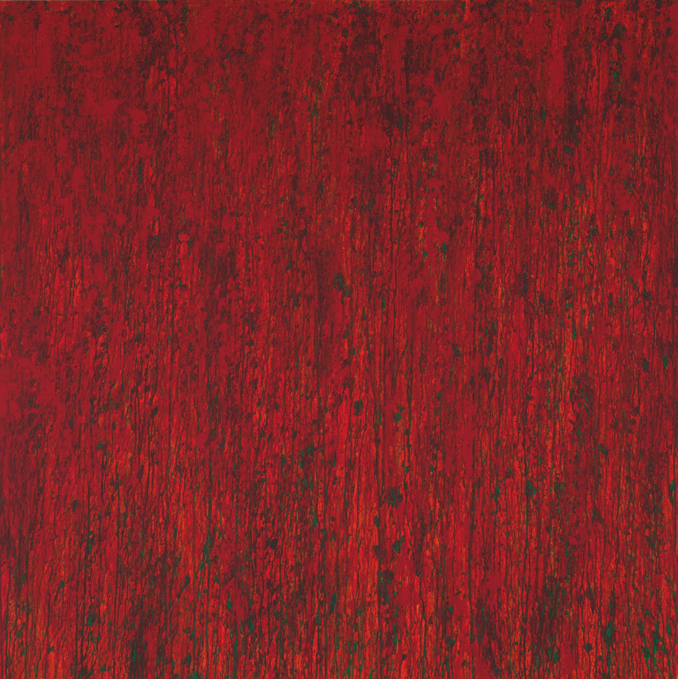 Leon Tarasewicz, Obraz czerwony, data powstania; 2015 rok, akryl na płótnie, rozmiar 150 cm na 150 cm